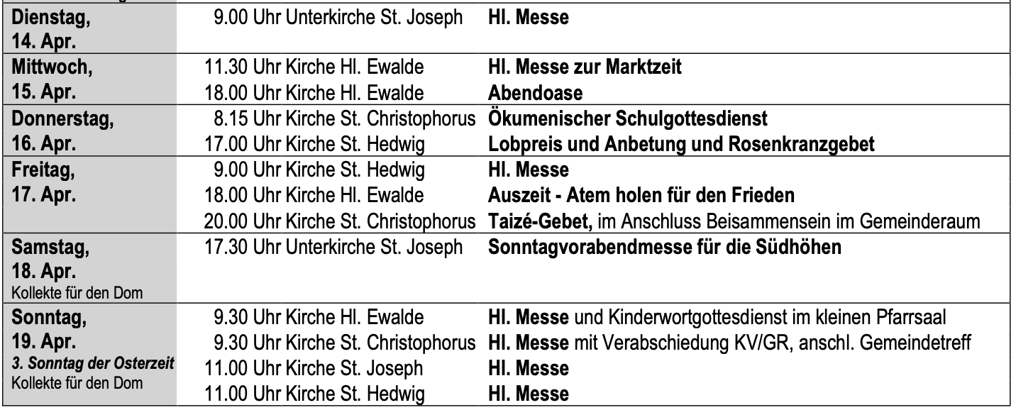 Treffpunkt: Pfarrzentrum St. Hedwig (Besprechungsraum)