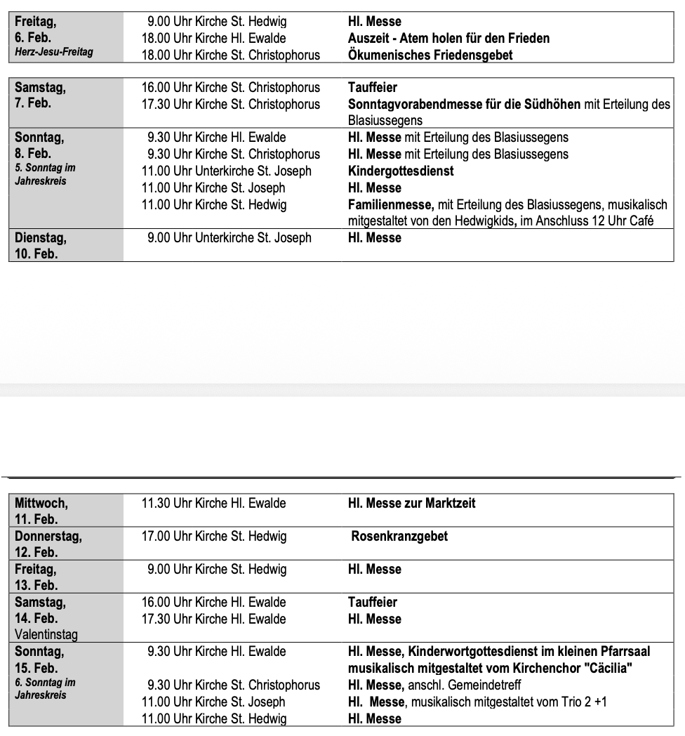 5. Sa. im Monat keine Abendmesse