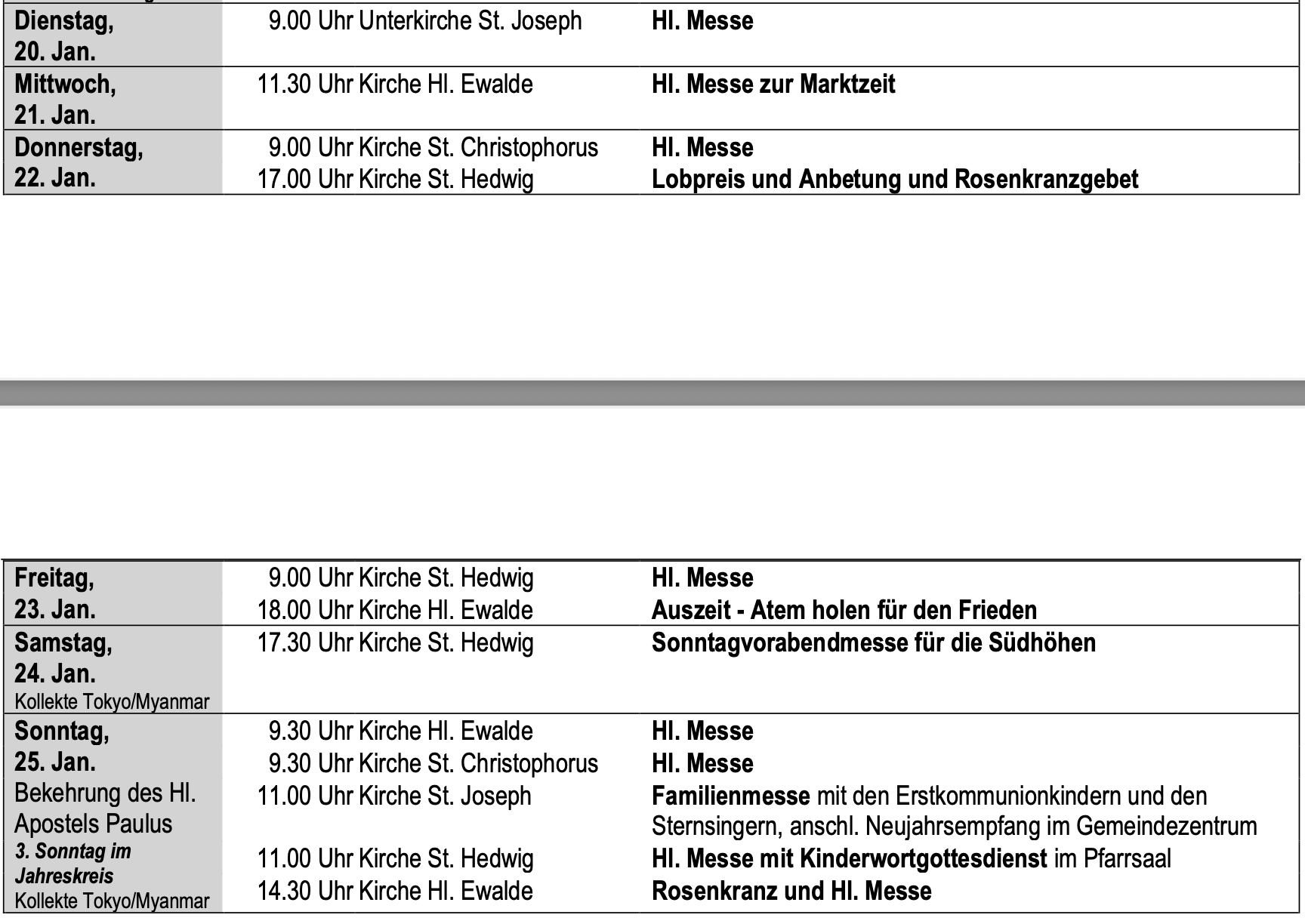 5. Sa. im Monat keine Abendmesse